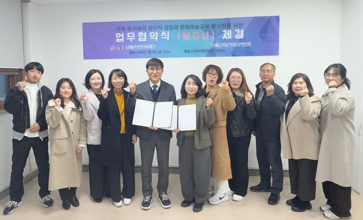 [한국Q뉴스] 남해관광문화재단과 남해군어린이집연합회는 9일 남해관광문화재단에서 남해군 유아 및 아동의 창의적 성장과 문화예술교육 활성화를 위한 업무협약을 체결했다.