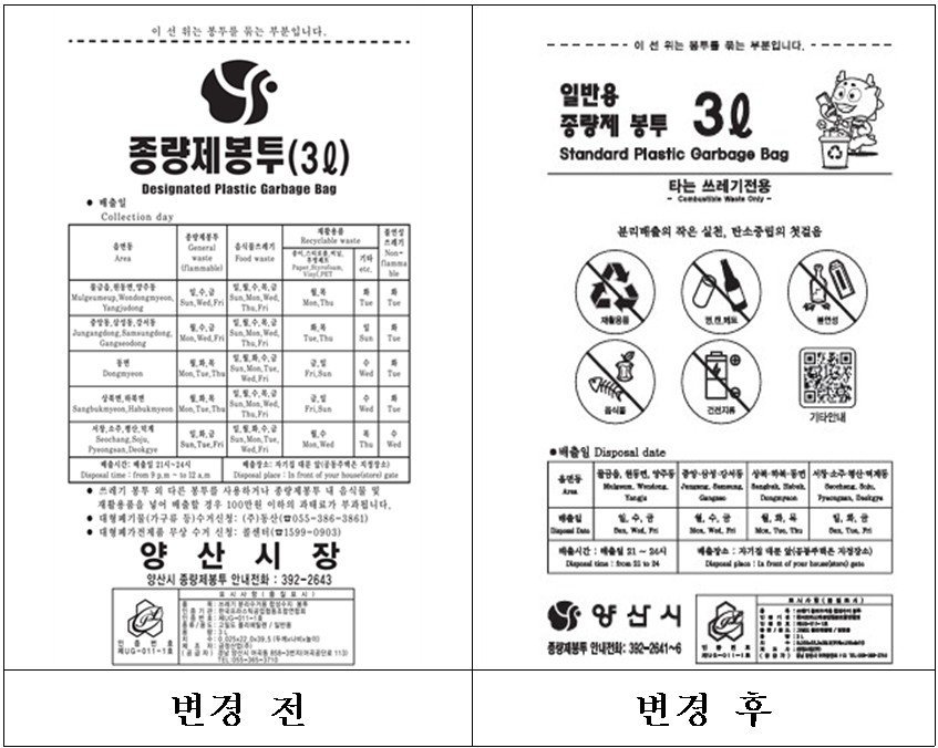 [한국Q뉴스] 양산시가 종량제 시행 이후 큰 변화 없이 유지해 온 쓰레기 종량제 봉투 디자인을 전면 개편한다.