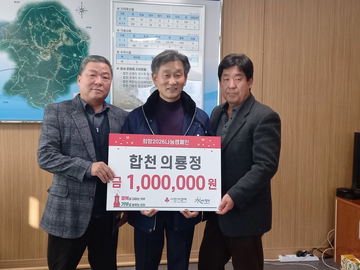 하원수 면장은 "매년 잊지 않고 따뜻한 나눔을 실천해 주시는 의룡정에 깊이 감사드린다"며 "기탁된 성금은 도움이 꼭 필요한 이웃들에게 소중히 전달하겠다"고 전했다.