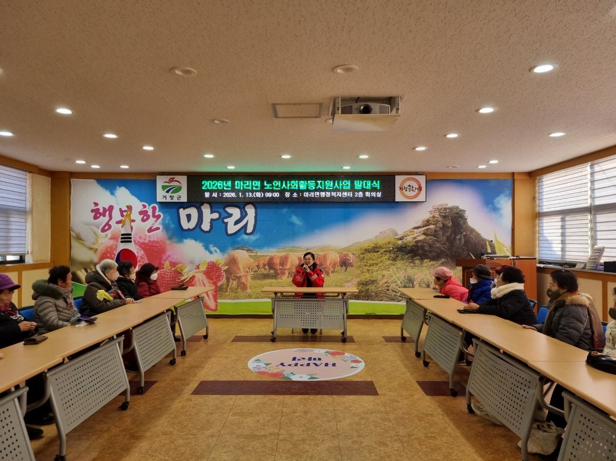 [한국Q뉴스] 거창군 마리면은 지난 13일, 행정복지센터 2층 회의실에서 2026년 노인사회활동지원사업 발대식 및 안전교육를 실시했다.