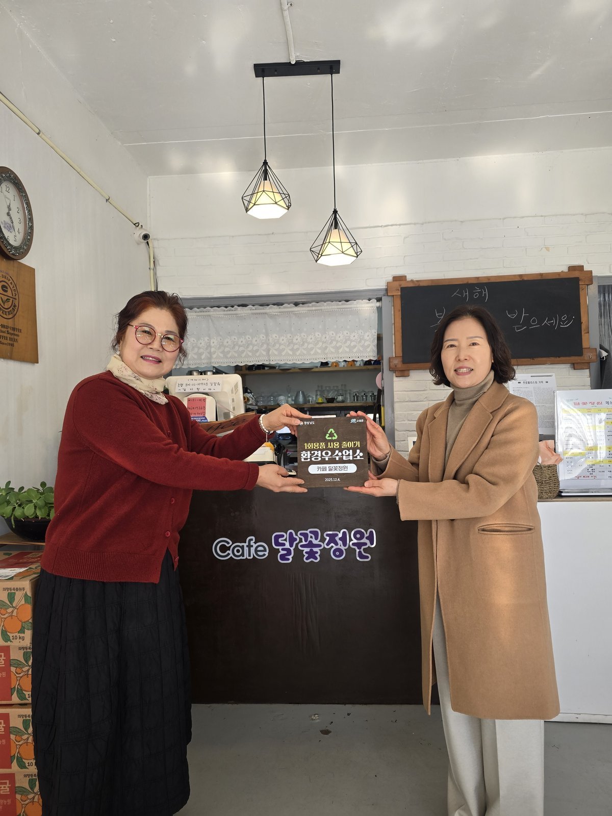 ‘카페 달꽃정원’은 매장 내에서 1회용품 사용을 최대한 줄이고 플라스틱 빨대 대신에 유리 빨대를 상시 제공하는 등 다회용품 사용으로 친환경 경영을 몸소 실천한 점이 높이 평가됐다.