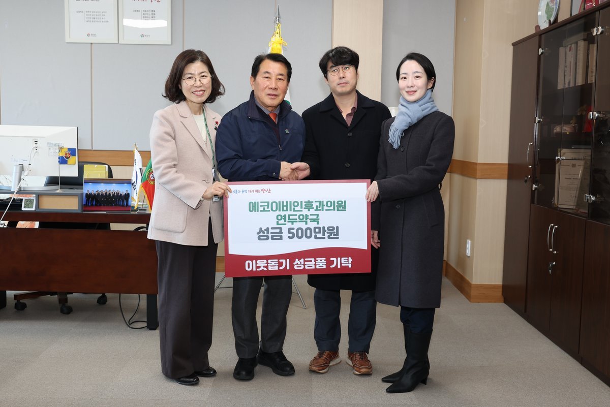 양산시 관계자는 “따뜻한 나눔을 실천해주신 에코이비인후과와 연두약국에 깊이 감사드리며, 기탁된 성금은 도움이 꼭 필요한 이웃들에게 소중히 전달하겠다”고 감사의 뜻을 전했다.