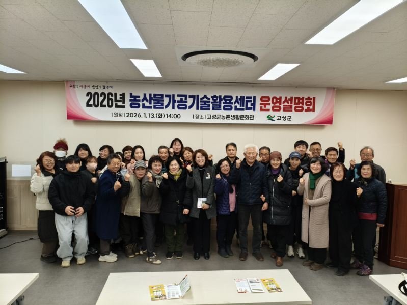 [한국Q뉴스] 고성군은 1월 13일, 농업기술센터에서 농산물가공지원센터 이용 농업인과 로컬푸드 생산자단체, 농산물가공창업아카데미 수료생 등 농산물 가공에 관심 있는 농업인을 대상으로 ‘농산물가공기술활용센터 운영설명회’를 개최했다.