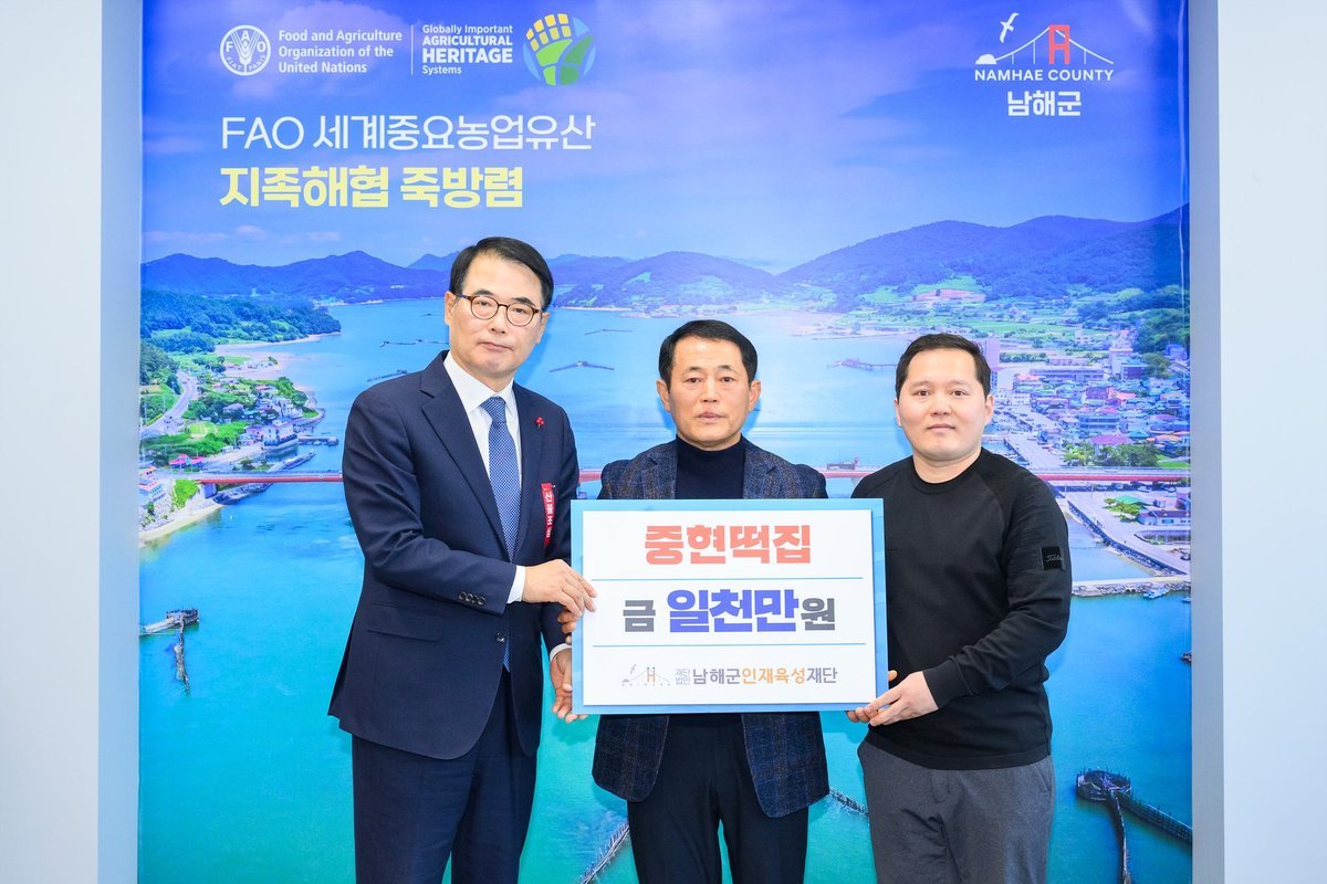 [한국Q뉴스] 남해군인재육성재단은 이철세 서면노인회 분회장, 중현떡집, 금송운수, 한국쌀전업농남해군연합회에서 인재육성기금을 기탁했다고 밝혔다.