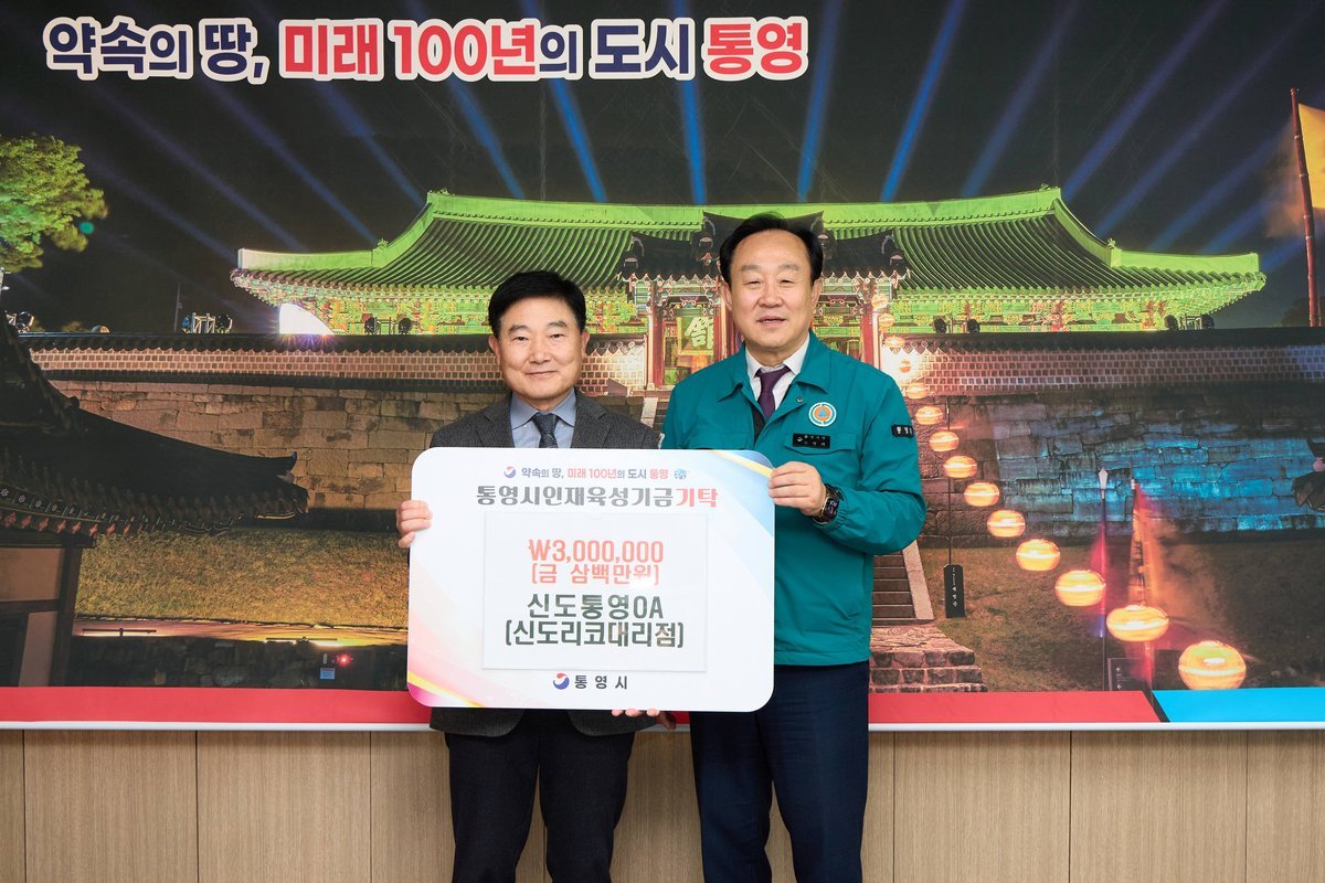 [한국Q뉴스] 신도통영OA는 지난 15일 통영시에 인재육성기금 300만원을 기탁했다.