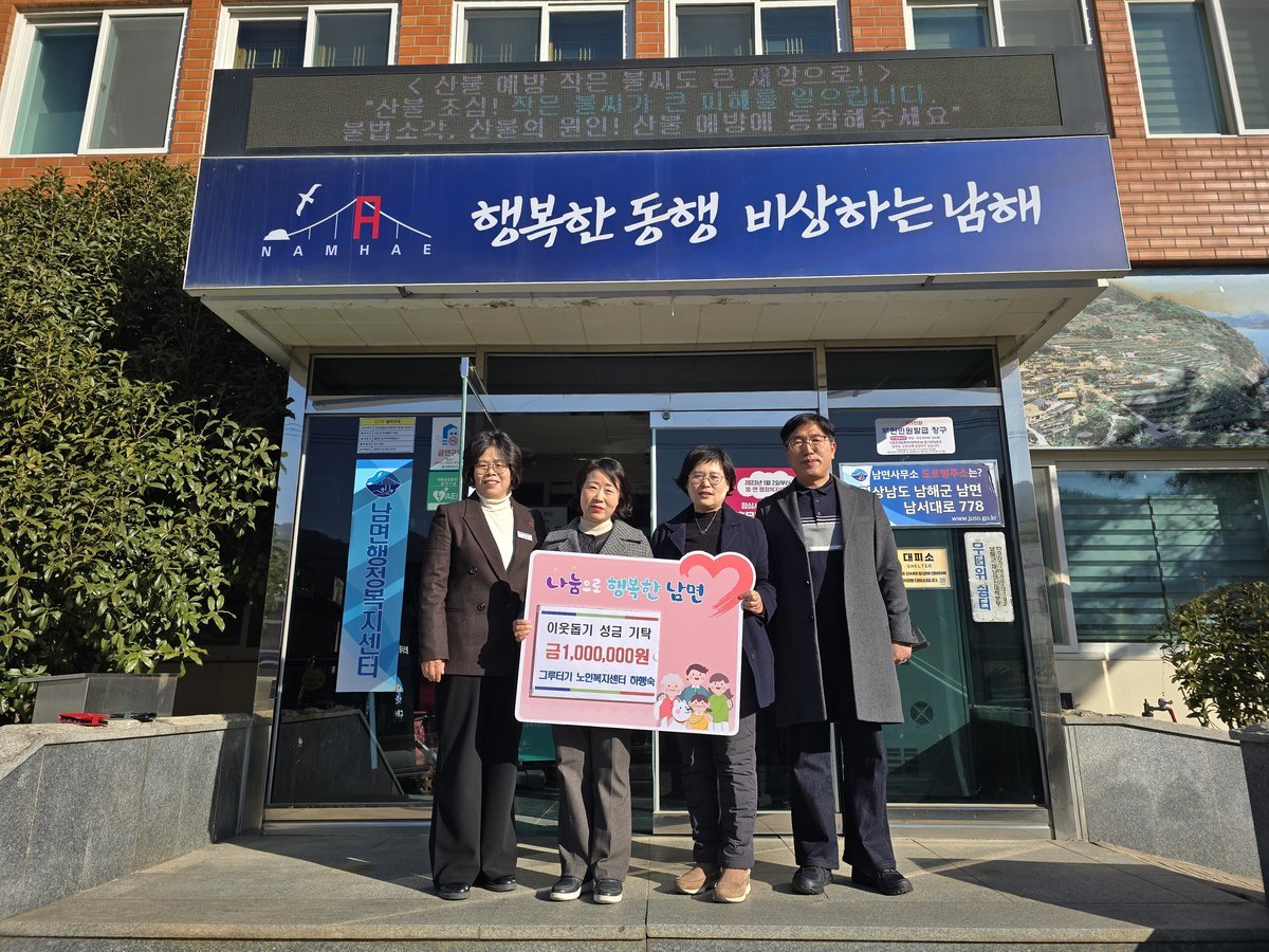 [한국Q뉴스] 남면행정복지센터는 지난 16일 그루터기 노인복지센터에서 어려운 이웃을 위해 써달라며 100만원을 기탁했다고 밝혔다.