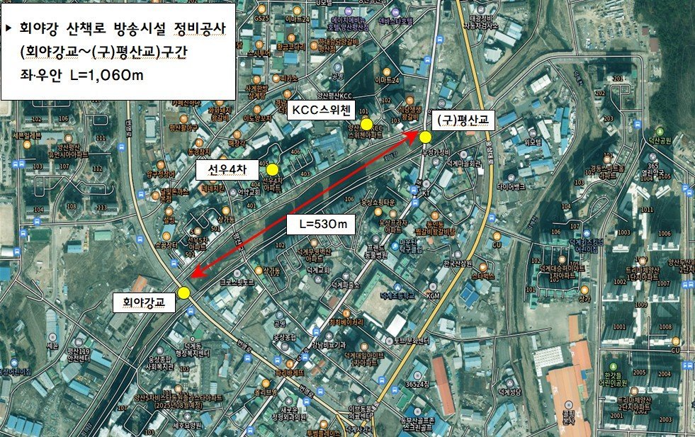 [한국Q뉴스] 양산시 웅상출장소는 회야강 주요거점 지역인 덕계·평산 지역의 선우 4·5차 아파트 주변 산책로와 소주, 서창 지역의 천성리버 아파트 주변 산책로에 방송시설 정비와 최근 러닝 동호회 확산 등 산책로 이용자들이 급증하면서 산책로 이용시 상호 충돌 등의 불편함을 개선하기 위해 회야강 산책로 확장을 위한 실시설계에 착수한다.