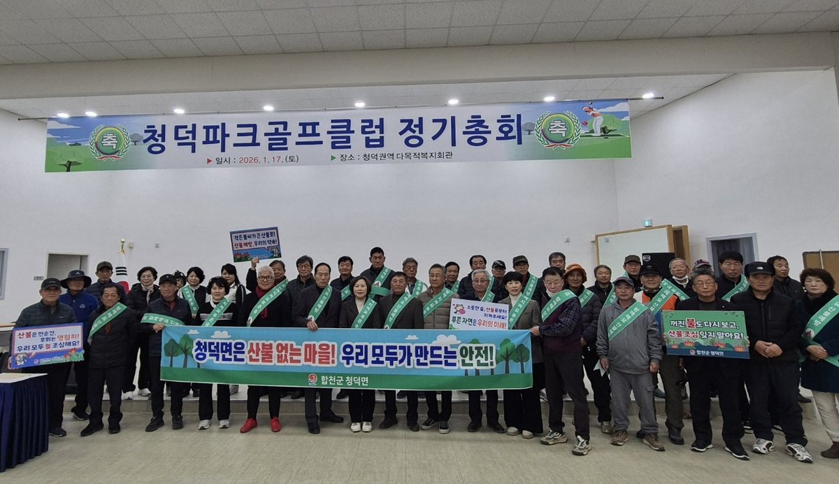 [한국Q뉴스] 합천군 청덕면은 17일 청덕면 다목적복지회관에서 파크골프 회원 100여명이 참석한 가운데 청덕면 파크골프클럽 정기총회와 함께 산불예방 캠페인을 실시했다.