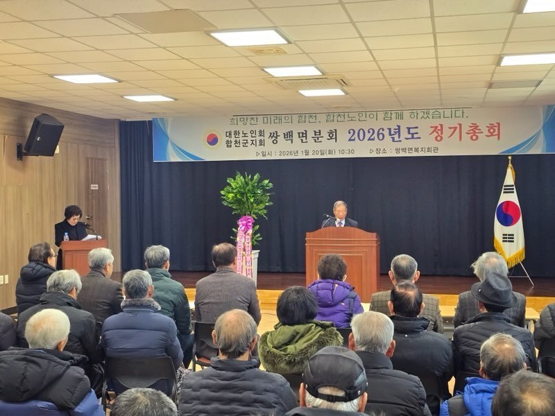 [한국Q뉴스] 대한노인회 합천군지회 쌍백면분회는 20일 쌍백면복지회관 2층 회의실에서 변종철 면장, 면내 34개 경로당 회장 및 임원, 내빈 등 40여명이 참석한 가운데 정기총회를 개최했다.