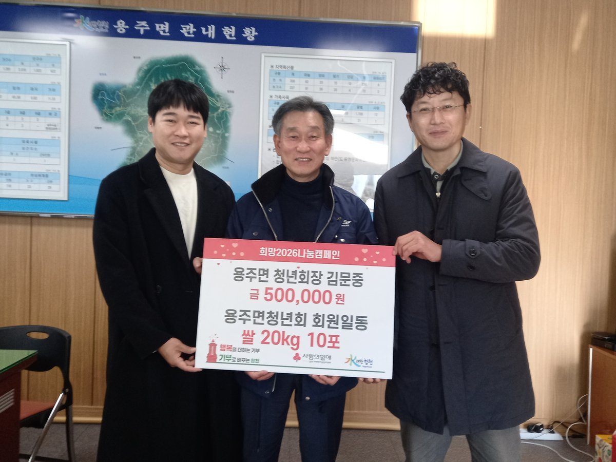 김문중 신임 청년회장은 "지역 주민들의 축하와 응원에 보답하고자 청년회 회장으로서 첫 걸음을 나눔으로 시작하고 싶었다"며 "작은 나눔이지만 지역사회에 온기를 전할 수 있기를 바라며 앞으로도 청년회가 지역 공동체의 든든한 주체로서 역할을 다하겠다"고 밝혔다.