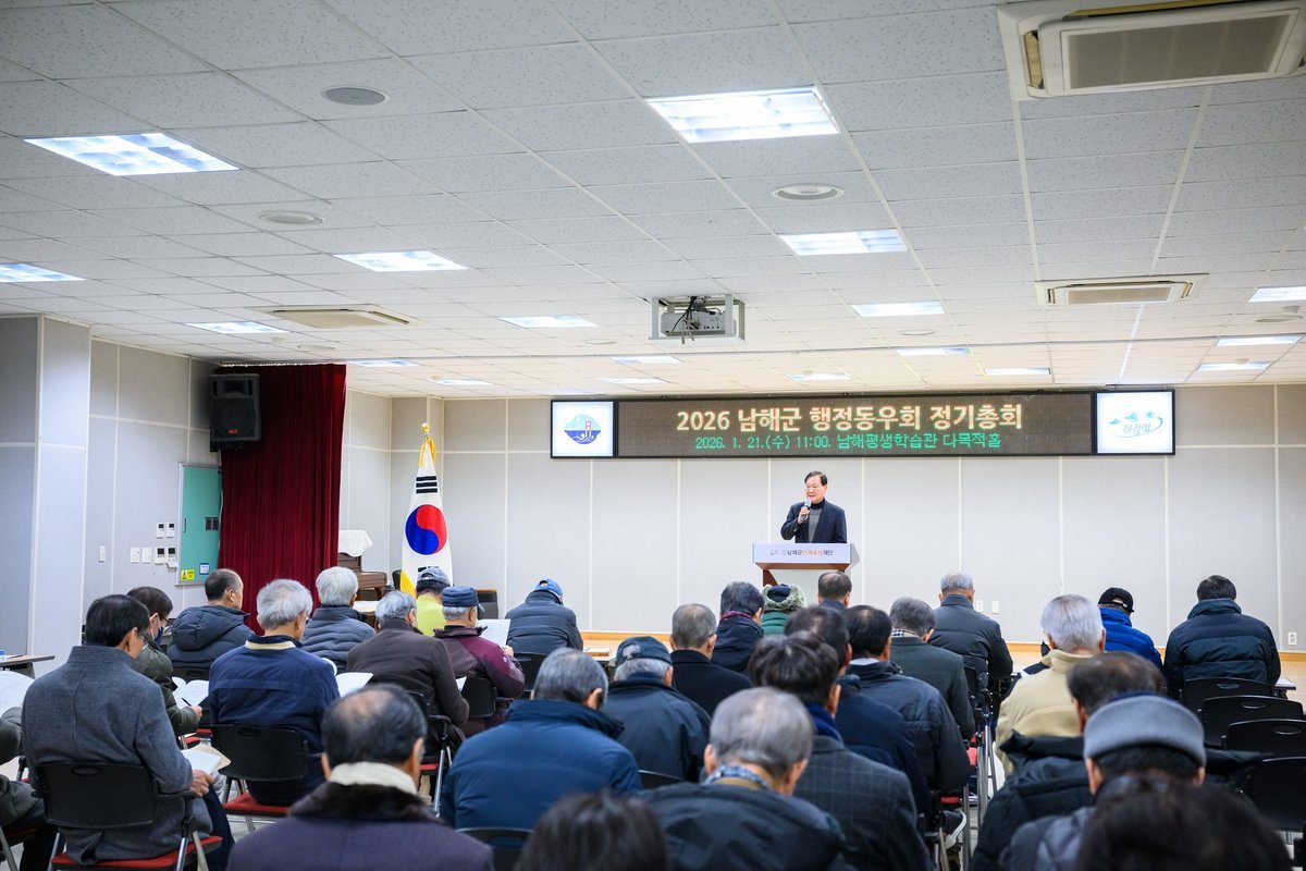 [한국Q뉴스] 남해군지방행정동우회는 지난 21일 남해화전도서관 다목적홀에서 회원 40여명이 참석한 가운데 ‘2026년 남해군행정동우회 정기총회’를 개최했다.