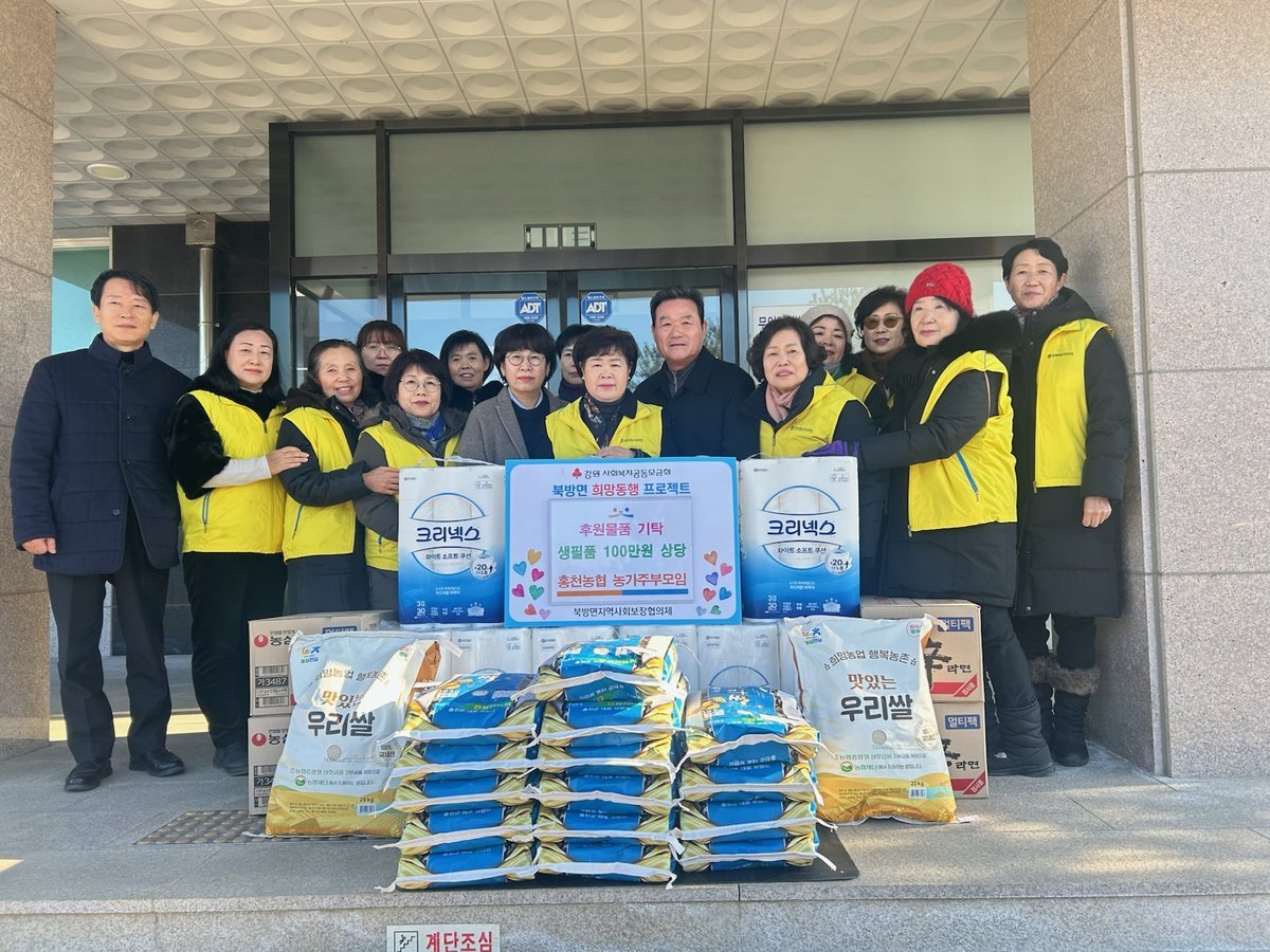 [한국Q뉴스] 홍천 농협 농가주부모임는 1월 22일 북방면 행정복지센터를 방문해, 북방면 취약계층을 위해 라면, 쌀, 휴지 등 생활에 꼭 필요한 생필품으로 꾸려진 100만원 상당의 후원 물품을 기탁했다.
