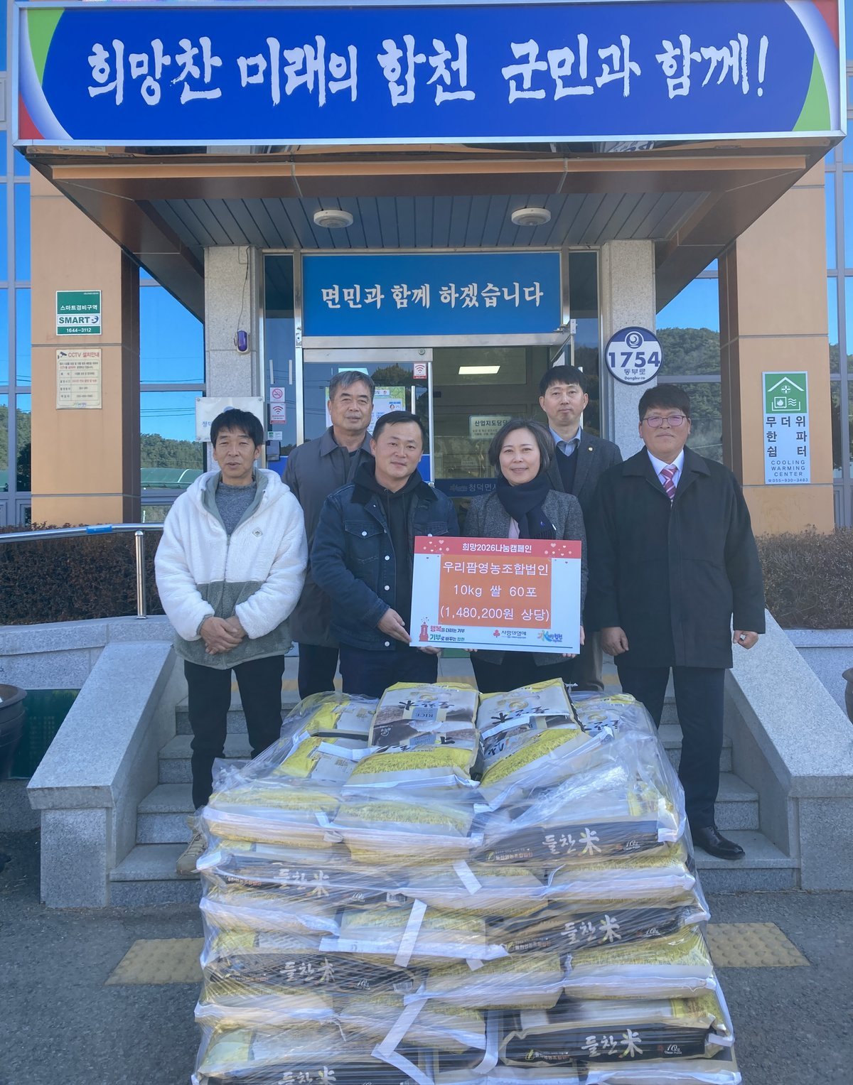 [한국Q뉴스] 합천군 청덕면 우리팜영농조합은 지난 22일 청덕면사무소을 방문해 관내 어려운 이웃에게 써 달라며 10kg 쌀 60포를 기탁했다고 밝혔다.
