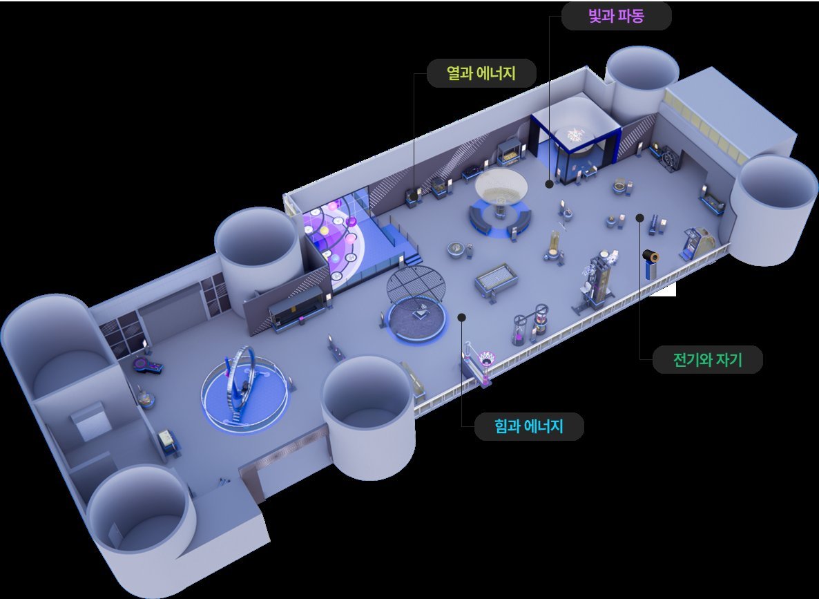 물리 연구실은 힘과 에너지, 열과 에너지, 빛과 파동, 전기와 자기 등 4개 구역으로 구성되었으며, 국립중앙과학관 전시품개발센터의 자체 연구개발 전시품 2종을 포함해 총 33종의 물리 체험 전시품을 선보인다.