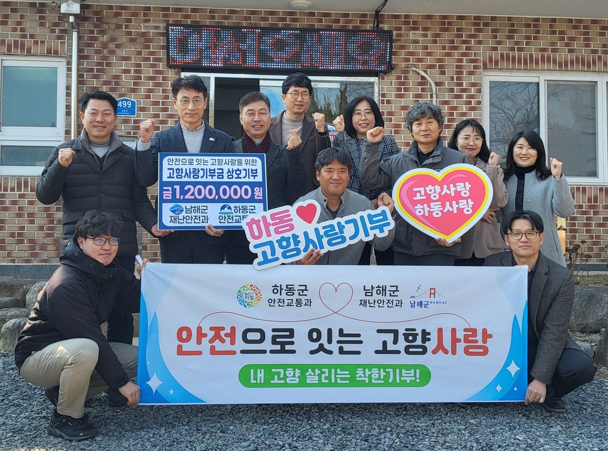 [한국Q뉴스] 남해군 재난안전과와 하동군 안전교통과는 “안전으로 잇는 고향사랑”실천을 위해 23일 고향사랑기부금 상호기부 행사를 실시햇다.