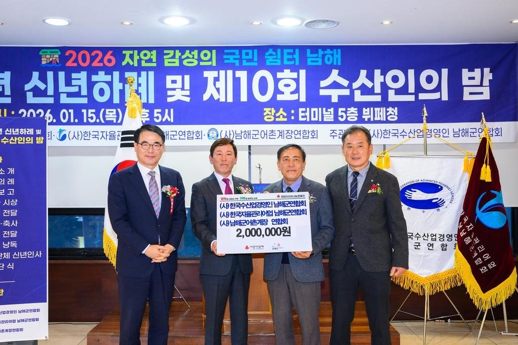 이번 성금은 한국수산업경영인 남해군연합회, 남해군어촌계장연합회, 한국자율관리어업 남해군연합회 등 3개 수산단체가 협력해 마련했다.