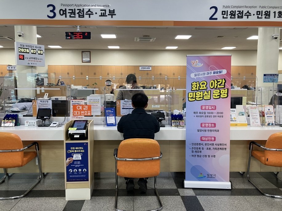 [한국Q뉴스] 경남 밀양시는 평일 근무 시간 내 민원실 방문이 어려운 민원인의 편의 제공을 위해 매주 화요일 오후 8시까지 시청 민원실을 연장 운영한다고 밝혔다.