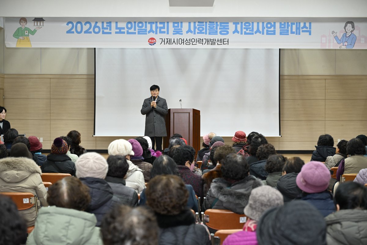 [한국Q뉴스] 거제시여성인력개발센터는 지난 22일 센터 대강당에서 2026년 노인일자리 및 사회활동지원사업의 본격적인 시작을 알리는 발대식과 안전교육을 개최했다.