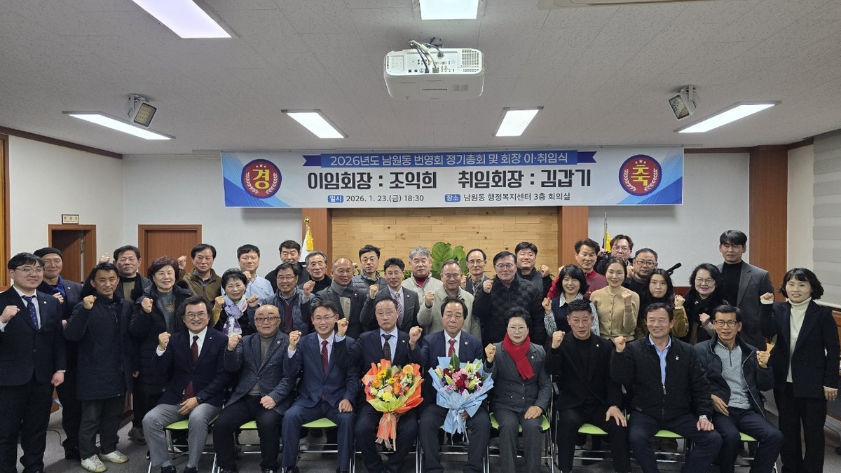 [한국Q뉴스] 상주시 남원동 번영회는 2026년 1월 23일 오후 6시 30분, 남원동 행정복지센터 3층 회의실에서 1월 정기총회 및 회장 이·취임식을 열고 김갑기 신임 회장의 취임을 공식화했다.