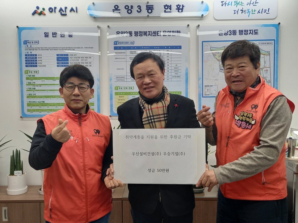 이번에 기탁된 성금은 온양3동 저소득 취약가구를 위한 맞춤형 복지서비스 지원에 사용될 예정이다.