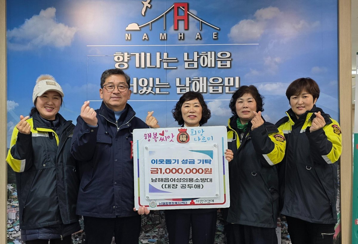 [한국Q뉴스] 남해읍 행정복지센터 지난 26일 남해읍여성의용소방대가 지역 내 어려운 이웃을 돕기 위한 이웃돕기 성금 100만원을 기탁했다고 밝혔다.