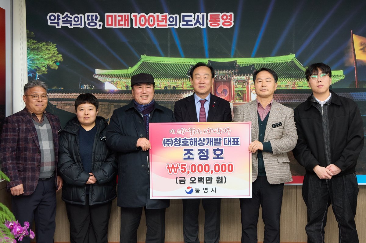 [한국Q뉴스] ㈜청호해상개발 조정호 대표가 지난 26일 통영시를 찾아 고향사랑기부금 500만원을 기탁했다.