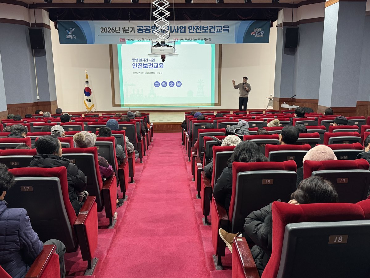[한국Q뉴스] 보령시는 지난 27일 보령문화예술회관 소공연장에서 공공일자리사업 참여자와 관계 공무원 등 110명을 대상으로 ‘2026년 1분기 공공일자리사업 안전보건교육’을 실시했다.