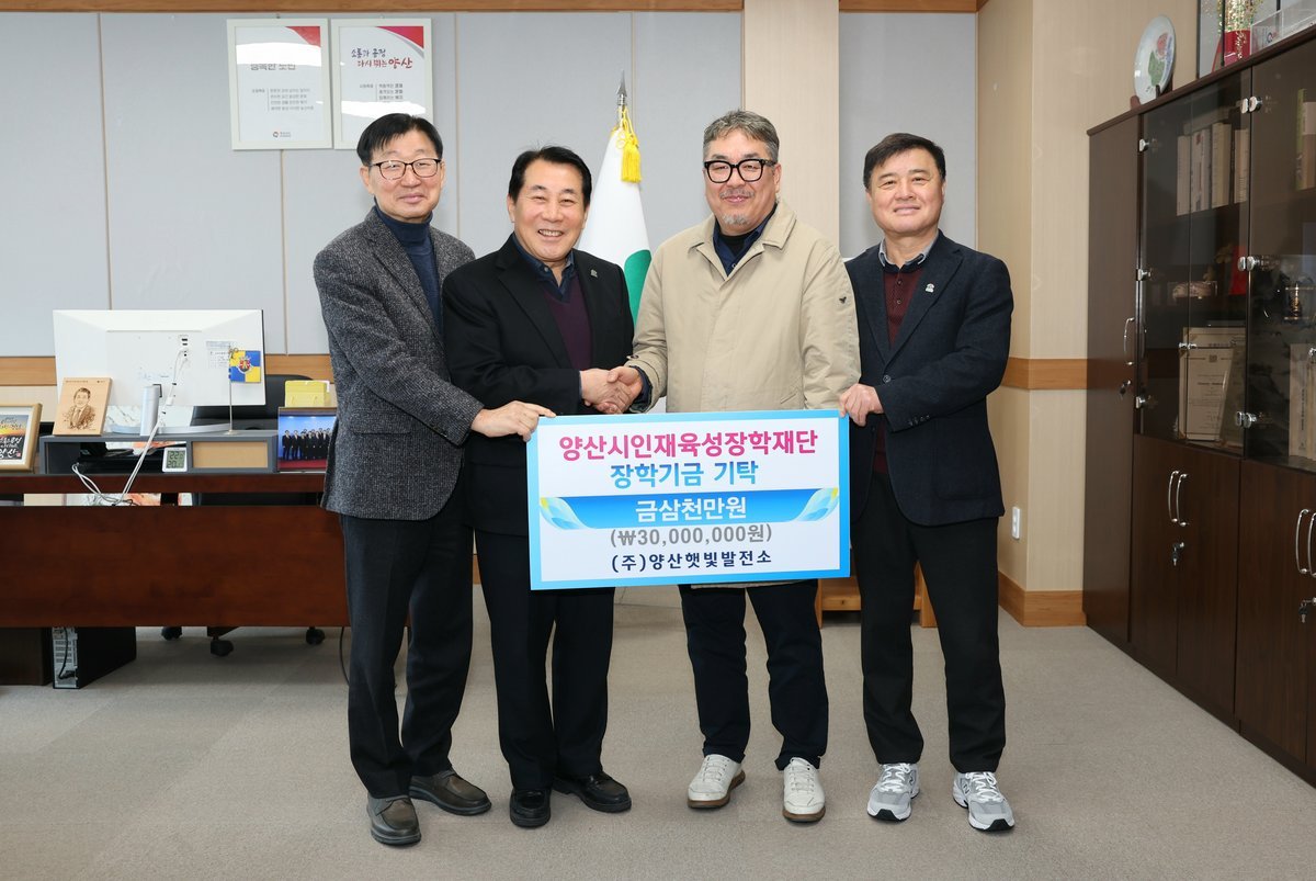 [한국Q뉴스] 양산시인재육성장학재단은 28일 양산햇빛발전소가 장학재단에 장학금 3000만원을 기탁했다고 밝혔다.
