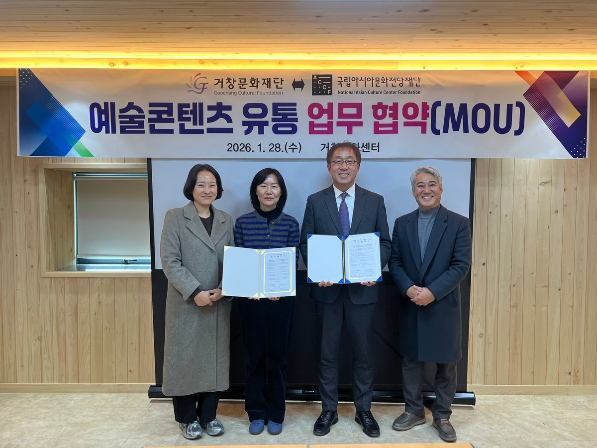 [한국Q뉴스] 거창문화재단은 지난 28일 거창문화센터에서 국립아시아문화전당재단과 공연예술 작품 유통을 위한 업무협약을 체결했다.