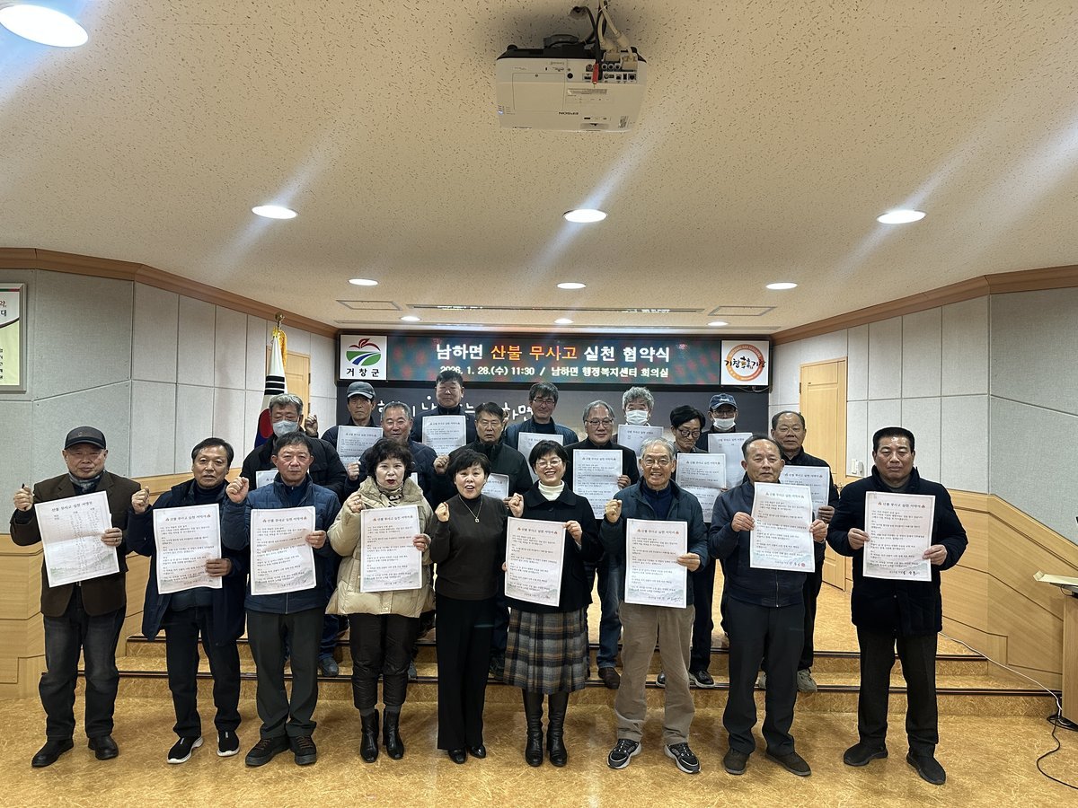 이지은 남하면장은 "산불 예방은 행정의 노력만으로 한계가 있으며 주민 한 분 한 분의 관심과 실천이 무엇보다 중요하다"며 "서약서를 마을회관에 비치해 경각심을 높이고 남하면이 끝까지 산불 무사고 지역으로 유지될 수 있도록 지속적인 홍보와 현장 점검을 이어 가겠다"고 말했다.