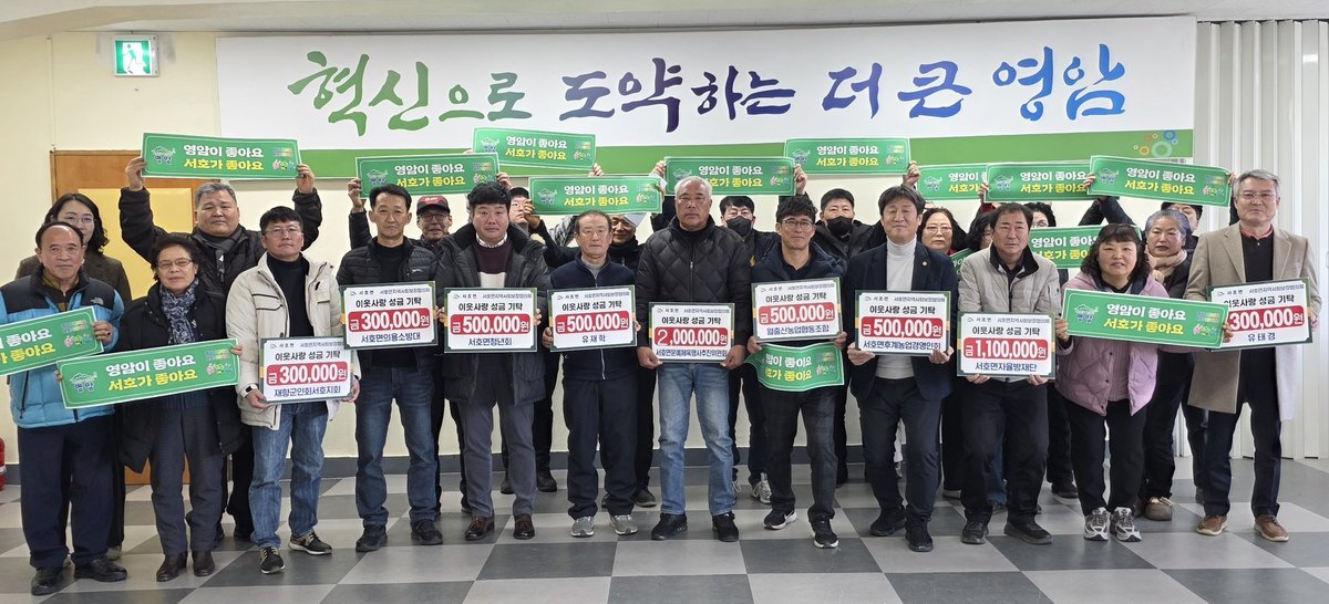 [한국Q뉴스] 영암군 서호면지역사회보장협의체가 ‘서호사랑 기부로 실천하세요’를 구호로 새해 첫 한 달을 ‘기부의달’로 정하고 이웃돕기 성금을 모금해 600만원을 모았다.