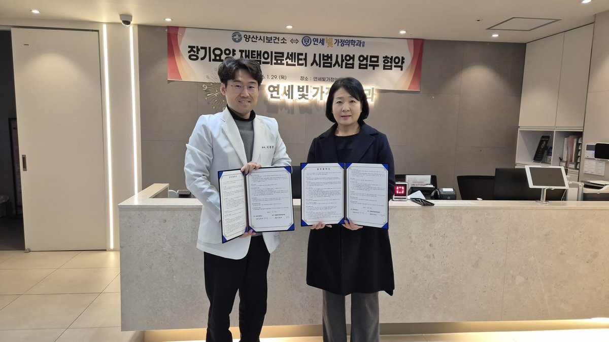 [한국Q뉴스] 양산시는 29일 연세빛가정의학과의원, 더바른내과의원과 ‘장기요양 재택의료센터 시범사업 추진을 위한 업무협약’을 체결했다.