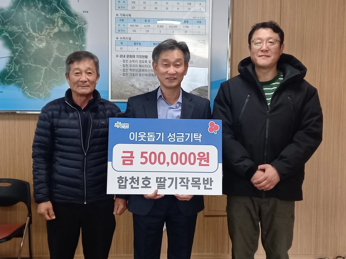[한국Q뉴스] 합천호 딸기작목반은 29일 이웃돕기 성금50만원을 용주면에 기탁했다.
