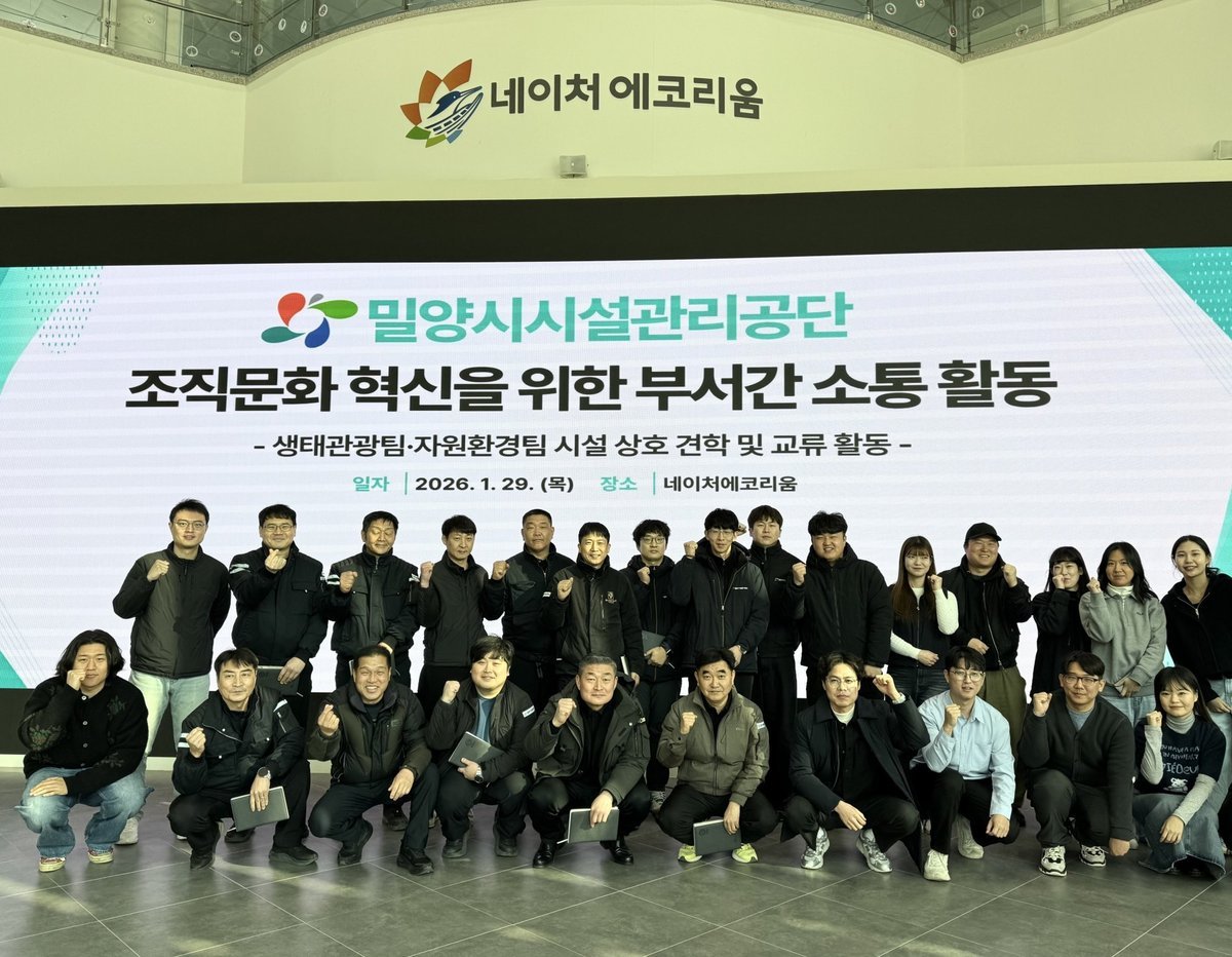 [한국Q뉴스] 밀양시시설관리공단은 29일 네이처에코리움과 밀양시 생활폐기물 소각시설에서 부서 간 소통 활동을 추진하며 조직 내 협업 강화와 소통 문화 정착에 나섰다.