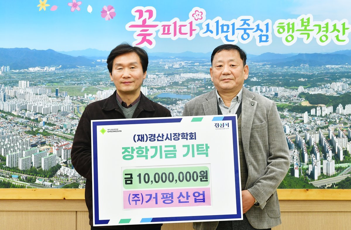 [한국Q뉴스] 경산시장학회는 28일 ㈜거평산업이 지역 인재 육성을 위한 장학금 1000만원을 기탁했다고 밝혔다.