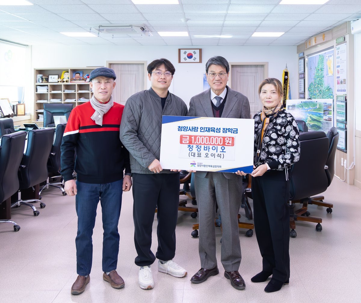 청양사랑인재육성장학회는 지난 29일 청정바이오로부터 장학금 100만원을 기탁받았다고 밝혔다.