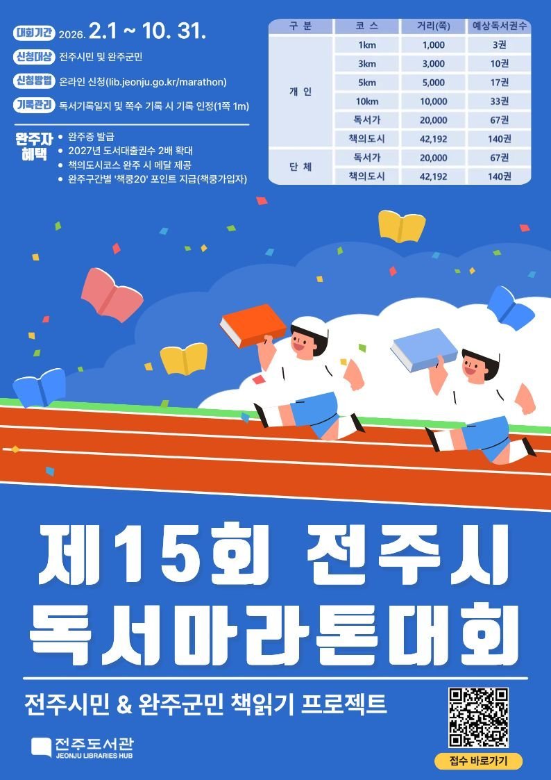 한편 제15회 전주시 독서마라톤 대회는 오는 2월 1일부터 전주도서관 누리집을 통해 신청할 수 있으며 기타