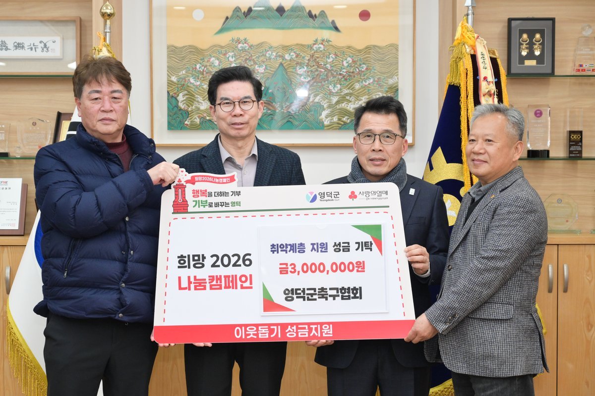 영덕군은 올해 1월 말까지 3억 600만원을 목표로 희망2026 나눔 캠페인을 펼치고 있으며 성금은 주민복지과와 9개 읍·면 행정복지센터에서 상시 접수한다.