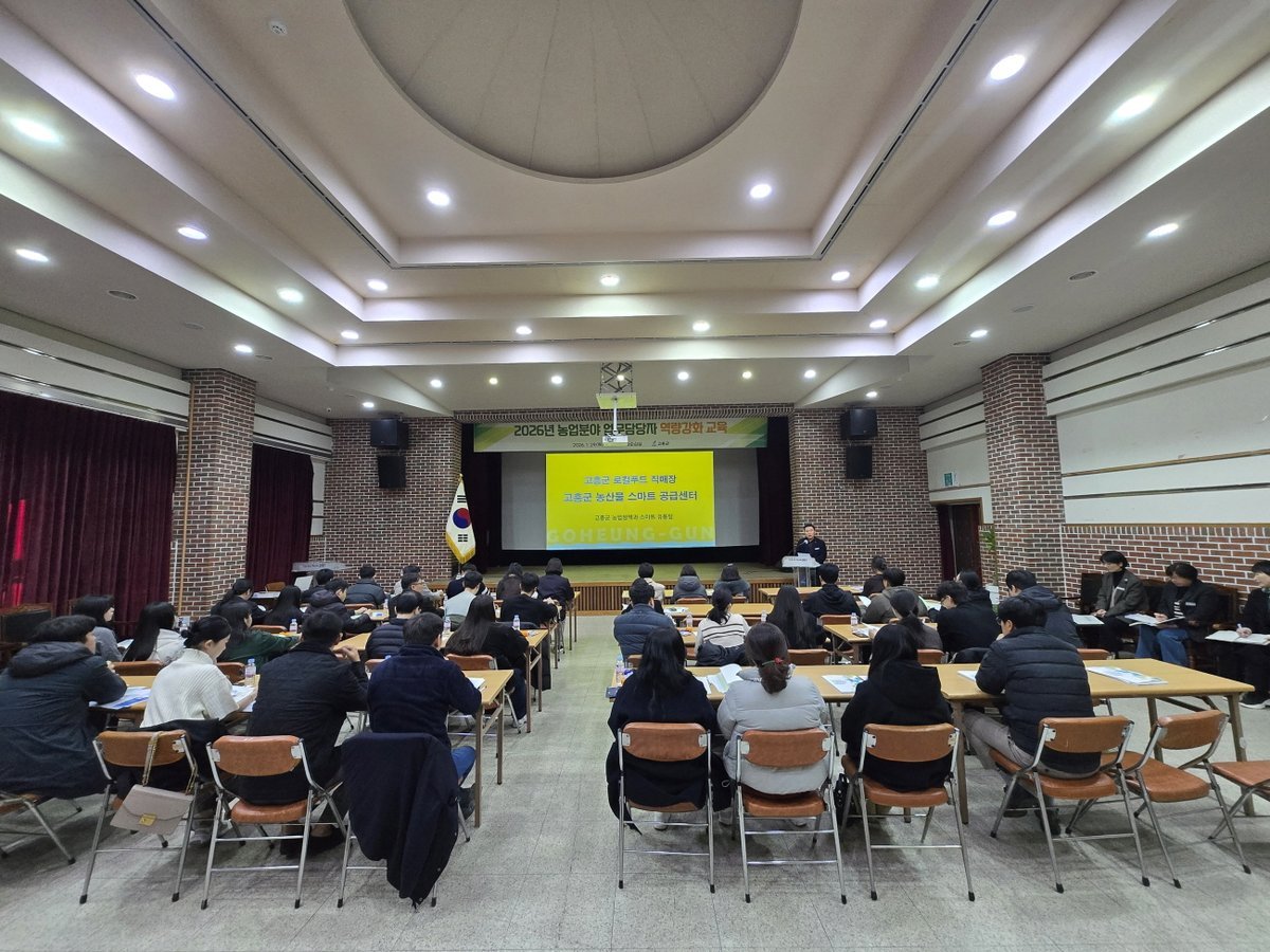 [한국Q뉴스] 고흥군은 지난 29일 고흥문화회관 송순섭실에서 읍·면 농정업무 담당자 등 70여명이 참석한 가운데 ‘2026 읍면 농정분야 업무담당자 역량강화 통합지침 교육’을 실시했다.