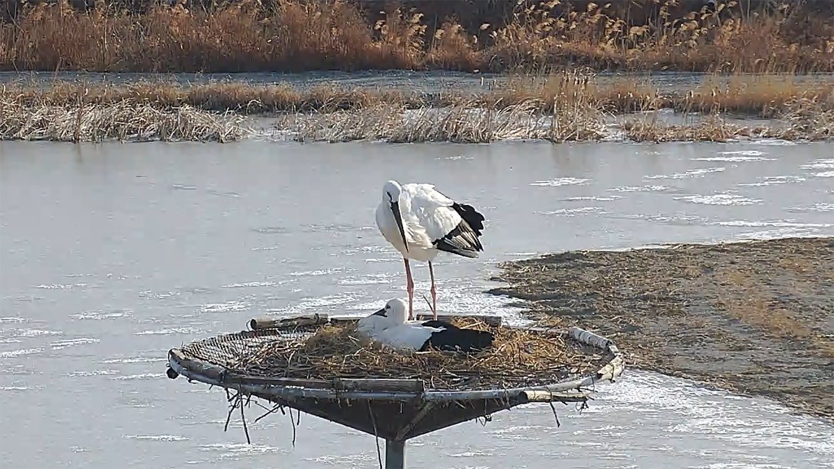 해당 황새 부부는 지난 2023년 야생 수컷과 방사 개체 암컷이 짝을 이룬 것으로 서산버드랜드에 마련된 둥지에 서식하고 있다.