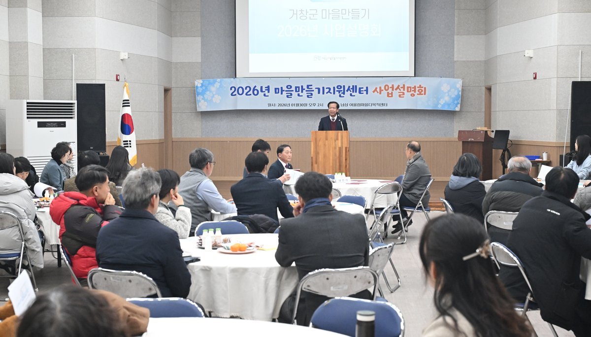 [한국Q뉴스] 거창군 마을만들기지원센터 지난 30일 남상면 어울림다목적회관에서 주민주도형 마을공동체 활성화와 지속가능한 농촌 발전을 도모하기 위해 읍·면 주민과 마을활동가, 완료지구 관계자 등을 대상으로 '2026년 거창군 마을만들기 사업설명회'를 개최했다.