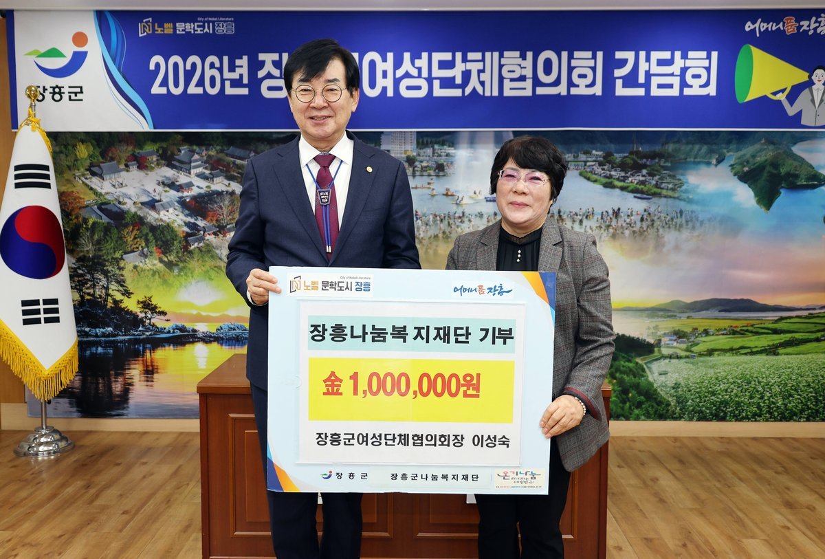 이성숙 장흥군여성단체협의회 회장 이성숙도 같은 날 성금 100만원을 기탁하며 따뜻한 나눔을 실천했다.