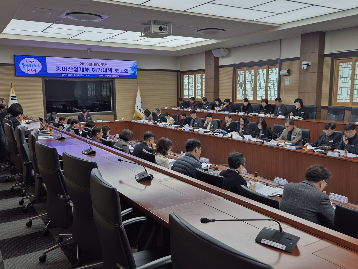[한국Q뉴스] 거제시는 지난 30일 민기식 부시장 주재로 현업업무 부서장과 전 면·동장을 대상으로 '2026년 현업부서 중대산업재해 예방대책 보고회'를 개최하고 현장 중심의 산업재해 예방 강화를 위한 부서별 추진대책을 점검했다.