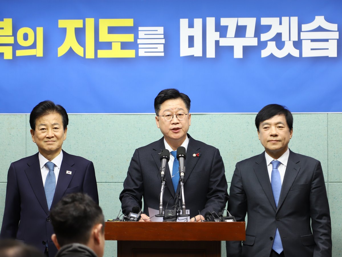 [한국Q뉴스] 전북도지사 출마를 선언한 안호영 국회 기후에너지환경노동위원장은 2일 기자회견을 열고 회견에 동석한 정동영 통일부 장관과 이성윤 더불어민주당 최고위원, 동참 의사를 밝힌 김윤덕 국토교통부 장관과 함께 전주·완주 행정통합을 추진하겠다는 입장을 밝혔다.