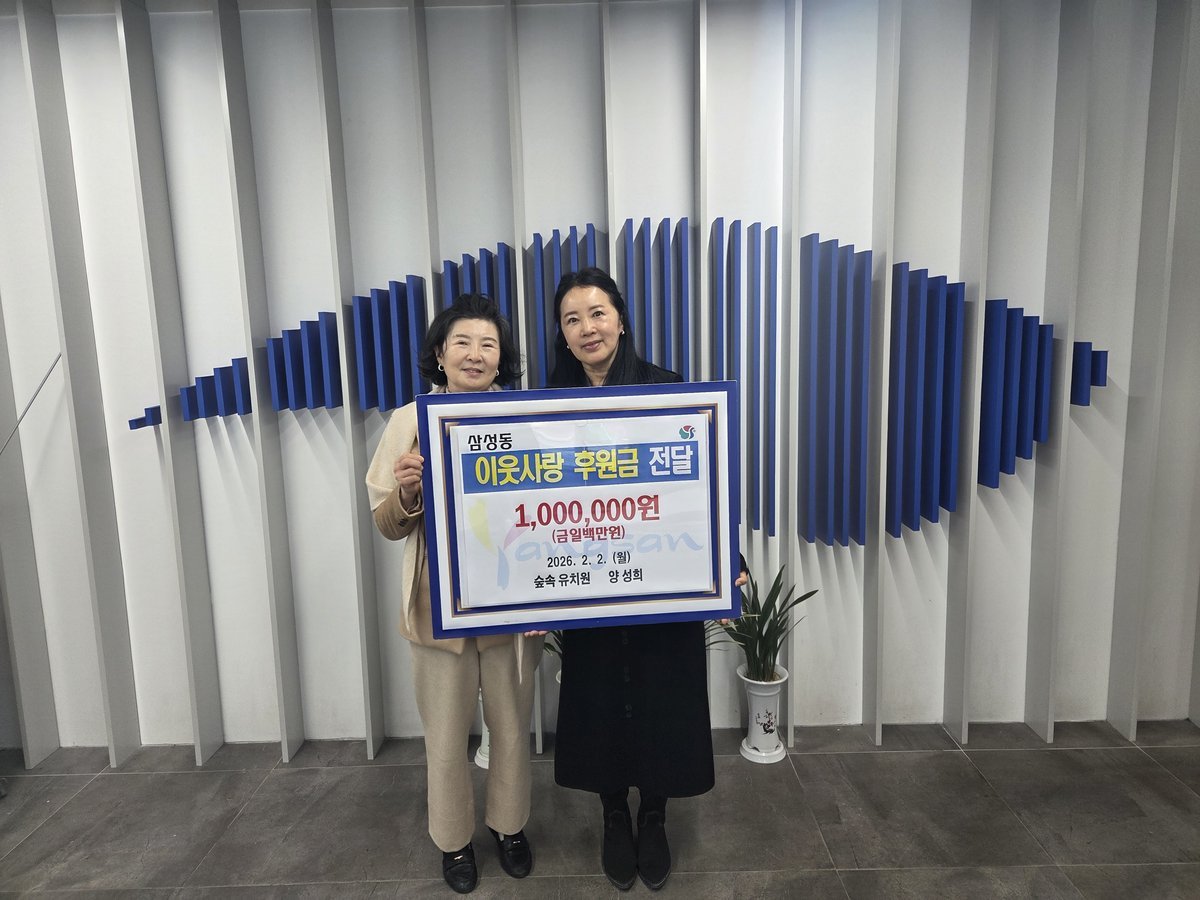 [한국Q뉴스] 숲속유치원 양성희 원장이 지난 2일 설 명절을 맞아 도움이 필요한 이웃을 위해 성금 100만원을 삼성동에 기탁했다.