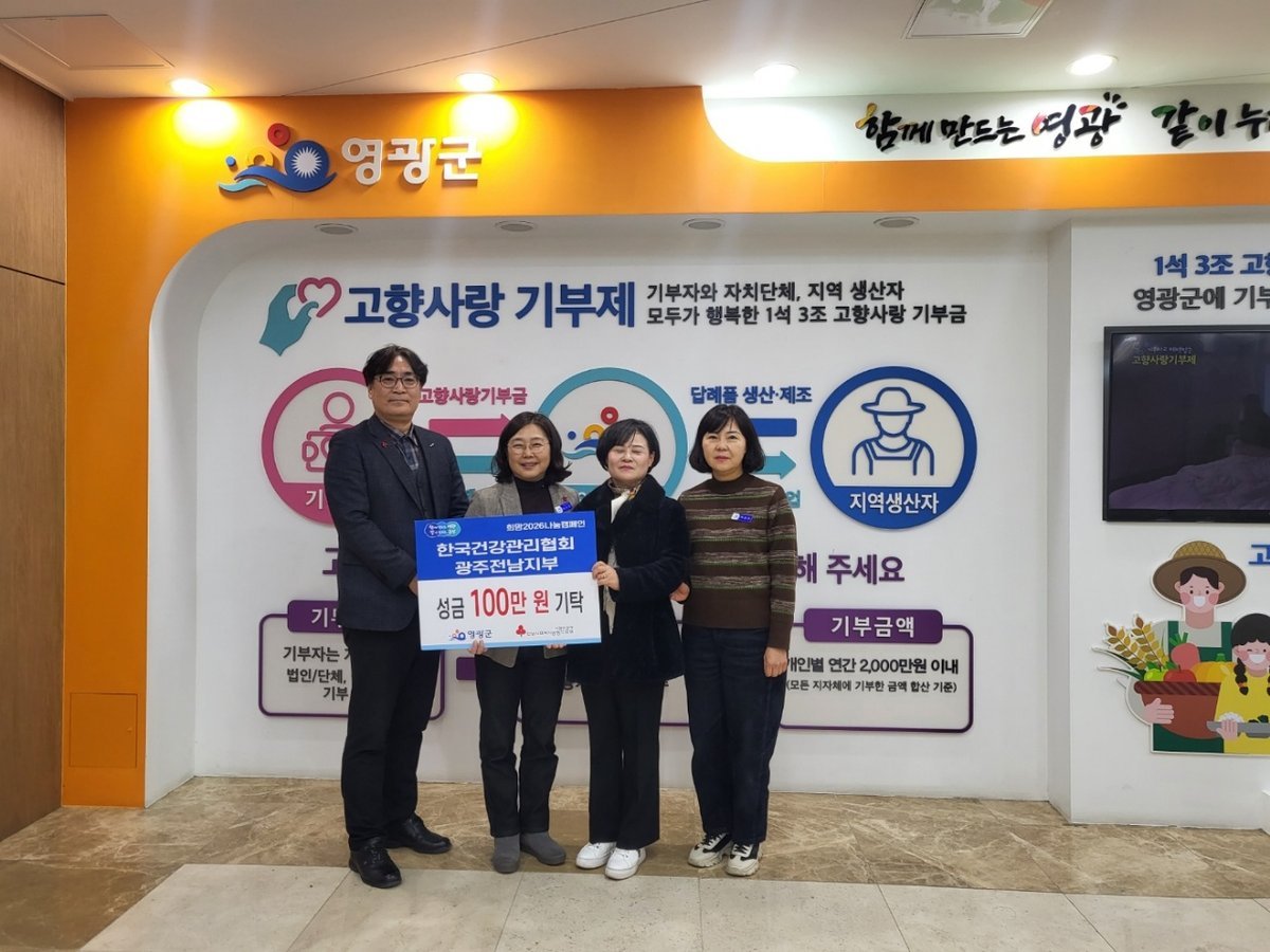 [한국Q뉴스] 영광군은 지난 28일, 한국건강관리협회 광주전남지부에서 지역사회 소외계층을 돕기 위한 이웃돕기 성금 100만원을 기탁했다고 밝혔다.