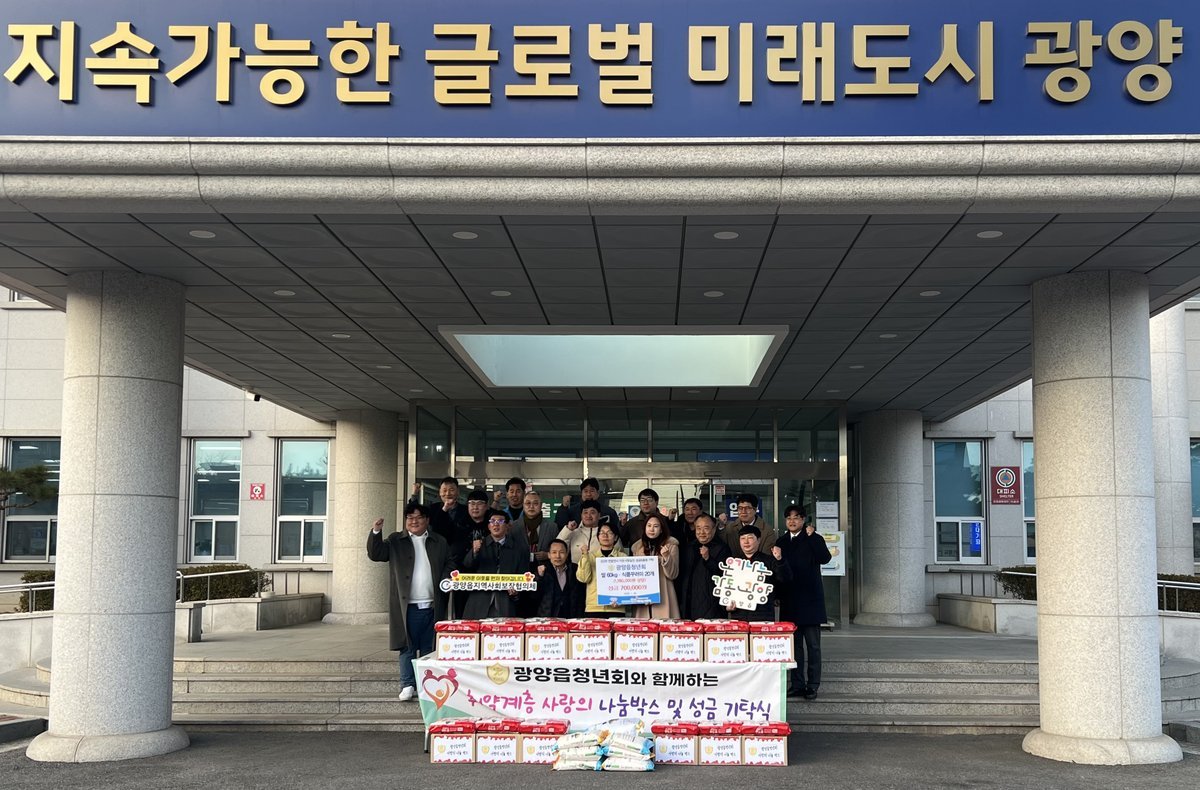광양읍 관계자는 “지역의 취약계층을 위해 자발적으로 나눔에 동참해 주신 광양읍청년회에 깊이 감사드린다”며 “이러한 따뜻한 기부 문화가 지역사회 전반으로 확산되길 기대한다”고 말했다.