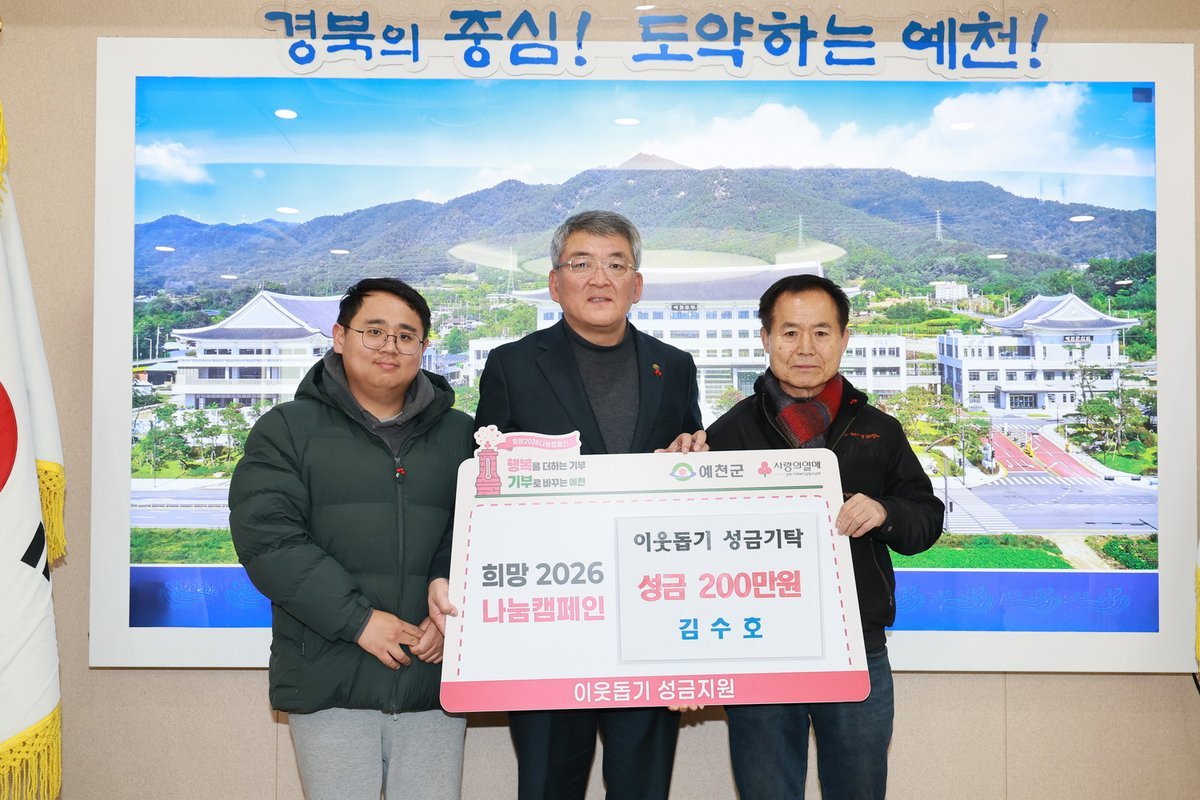 현재 예천조경을 운영하고 있는 감천면 김수호 씨는 오랫동안 기부를 이어오고 있으며 올해도 캠페인 막바지에 성금 200만원을 흔쾌히 기탁해 지역사회에 나눔 열기를 더했다.
