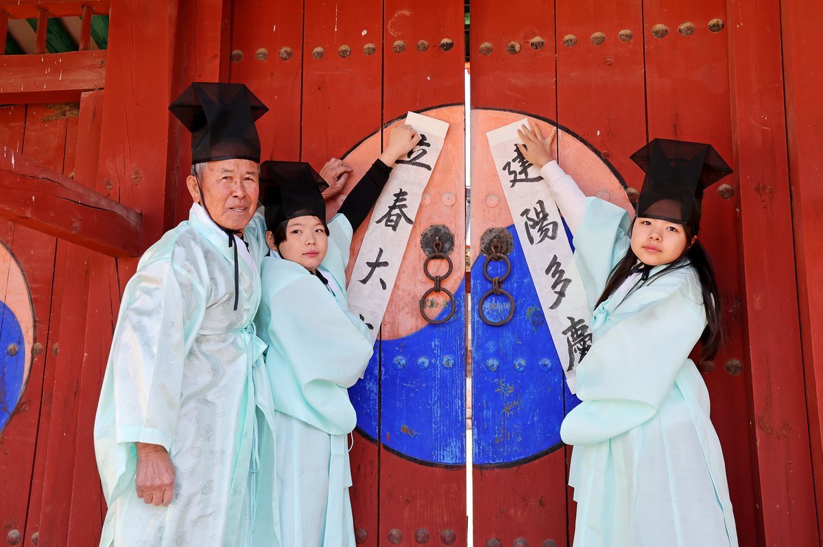 먹향을 가득 품고 완성된 입춘첩은 향교 외삼문에 부착하며 지역의 안녕을 바라는 마음을 나눴다.