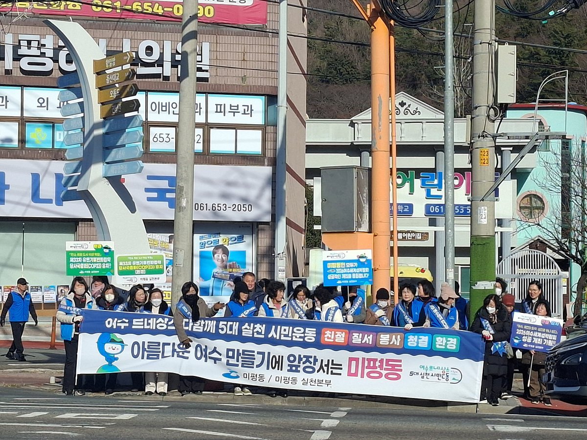 [한국Q뉴스] 여수 르네상스 미평동 실천본부는 지난 1월 28일 지역 주민들과 함께 2026여수세계섬박람회의 성공적인 개최를 기원하는 시민 캠페인을 실시했다.